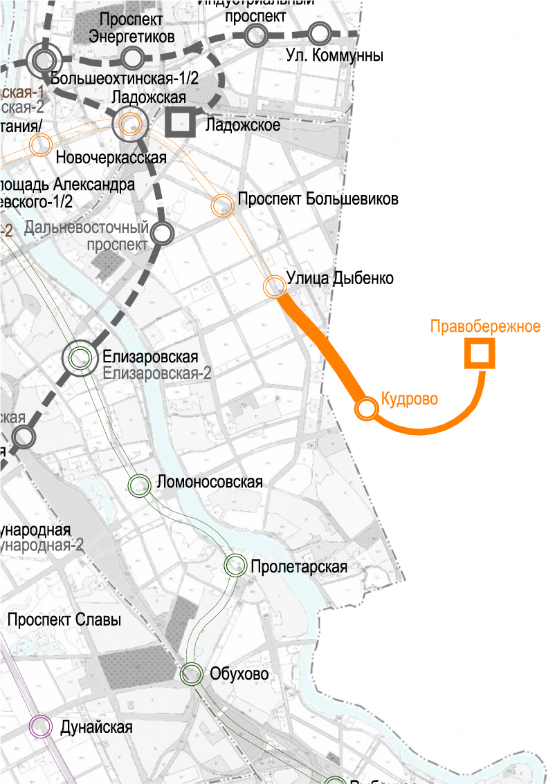 Кудрово – город в Ленинградской области с населением более 66 тыс. человек в настоящее время испытывает значительные трудности в вопросе транспортного обеспечения. Развитие Лахтинско – Правобережной линии метрополитена со cтроительством станции метро «Кудрово» и депо «Правобережное» значительно улучшит транспортную доступность города.