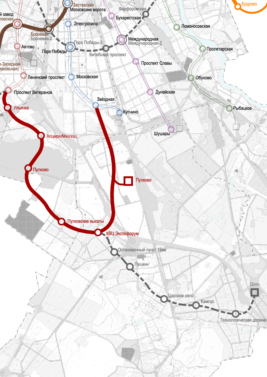 По поручению Президента РФ В.В. Путина начата реализация проекта строительства Кировско-Выборгской линии метрополитена в аэропорт «Пулково» с последующим продолжением до «КВЦ Экспофорум». Реализация этого инфраструктурного проекта в перспективе позволит привлечь примерно 1,6 трлн руб.инвестиций в жилищное строительство (7,9 млн кв. м. жилья).